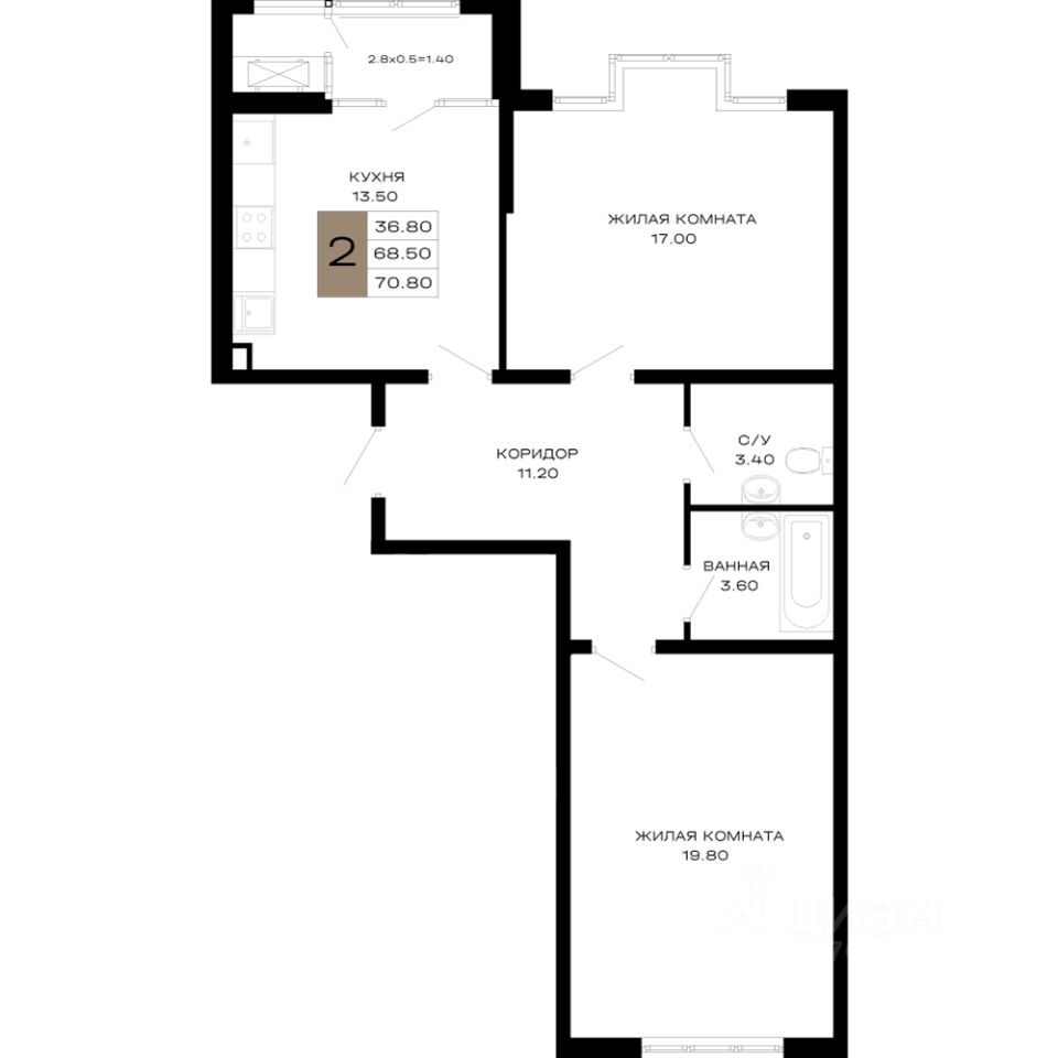 68 м² · Этаж 11 из 25