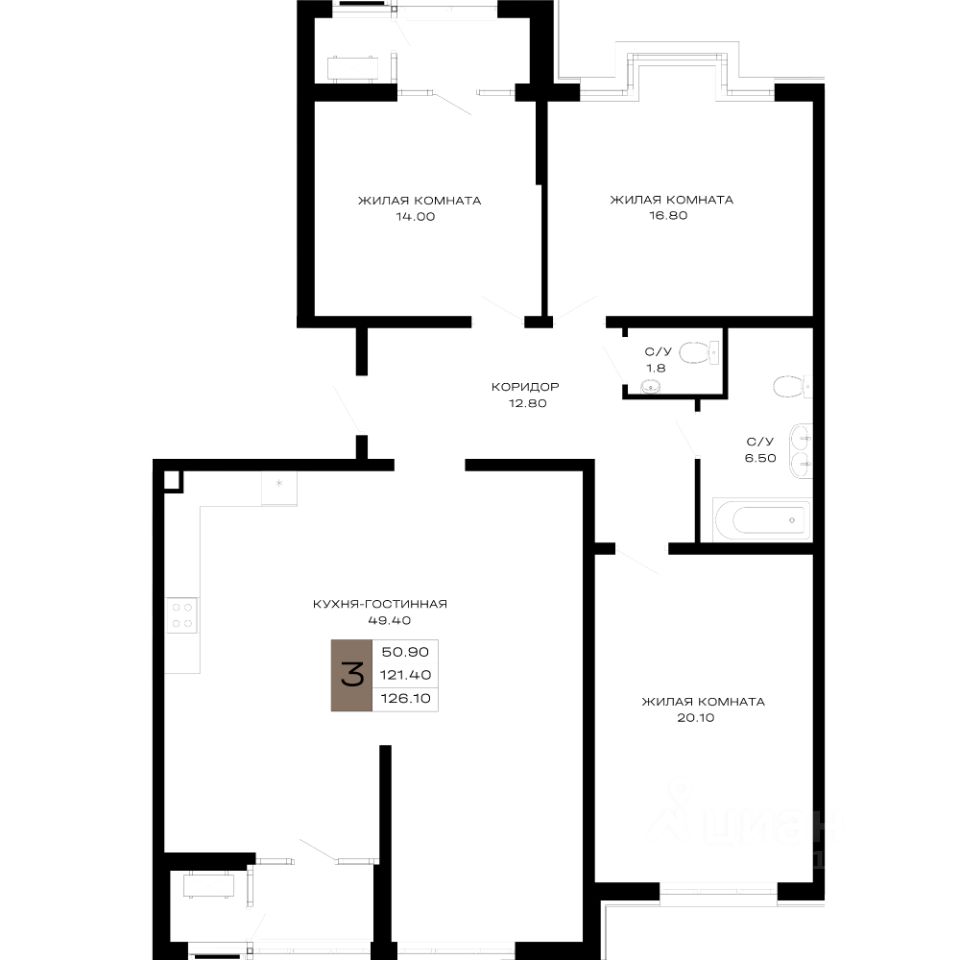 126 м² · Этаж 19 из 25