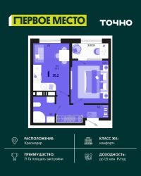 Жилой район ''Первое место''- один из самых масштабных проектов в России. На территории 71 га 18 кварталов, 31 дом переменной этажности от 8 до 18 этажей, собственный парк 9 га, храмовый комплекс, пешеходный бульвар ''Круг семьи'', детские и спортивные площадки, мангальные зоны и различные локации для отдыха. В шаговой доступности действующие муниципальные образовательные учреждения: школа на 1 100 мест и детский сад на 250 мест. Помимо этого, в жилом районе ''Первое место'' построятся школа на 1700 мест с крытым 25-метровым бассейном и 5 детских садов на 1 490 мест. На первых этажах многоуровневых парковок ''паркхабов'' разместится более 61 тыс м2 коммерческих помещений. Жителям будут доступны собственный фитнес-центр, кафе, рестораны и магазины. В каждом подъезде предусмотрены дизайнерские холлы в стиле лобби отелей, консьерж-сервис, лапомойки, отдельные колясочные и велосипедные. Также в домах будут просторные кладовые помещения и комнаты для хранения почты с почтоматами для получения посылок из маркетплейсов.