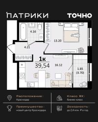 Продаётся 1-комнатная квартира в сданном доме (Дом 33Г), срок сдачи: IV-кв. 2022, общей площадью 52.4 кв.м., на 4 этаже. Development Plaza - мультиформатный проект, где качественная фундаментальная архитектура создает атмосферу успеха и вдохновения. Новый центр жилой и деловой активности. Здесь нужного вам бизнес-партнера гораздо проще встретить в ресторане, чем несколько недель искать его контакты через знакомых - скорее всего, он ваш сосед. Архитектура Фасад из травертина. Выполнен по индивидуальному проекту. Синтез архитектурных стилей привнес в Development Plaza европейскую атмосферу. Эксклюзив Окна в пол, окна в ванной, высокие потолки 3.6 м, студии, келлеры и роскошные 4-комнатные квартиры. Вариативность планировок и деталей - одна из уникальных характеристик Development Plaza. Play-zone спорт йога кинозал гамаки скалодром Свобода от границ Внутренний двор дома расположен на третьем уровне здания. Здесь созданы пространства для отдыха, творчества и впечатлений. Все спроектировано таким образом, чтобы дети росли здоровыми. Нетворкинг Жить в Development Plaza - значит быть частью большой истории, постоянно развивать собственные способности и строить нетворкинг в среде креативного класса и бизнес-элиты. Development Plaza органично сочетает в себе деловую и жилую среду. Достаточно двух минут, чтобы сменить домашнюю атмосферу на яркие ощущения от событий и перспективных знакомств. Премиальные холлы Уникальный авторский дизайн, дорогие натуральные материалы в отделке. Элементы системы умный дом для поддержания комфорта в местах общего пользования. Lounge-зона в каждом подъезде. Стойка консьерж-службы. Колясочные. Помещение для мойки лап питомцам. Квартиры Число квартир - 260. Широкая квартирография - от студий до 4 комнатных квартир евроформата. Высота потолков - 3,6 метра , возможность устройства 2го уровня в одной квартире. Предусмотрены варианты объединения квартир до 180 кв.м. Уникальные видовые характеристики. Квартиры с видом на Чистяковскую рощу, стадион Краснодар, центр города, в квартирах на юго-восточную сторону видно горы в ясную погоду! Квартиры на 3 стороны света! Некоторые квартиры имеют большое видовое окно в ванной комнате. Высокая обеспеченность квартир келлерами- современными европейскими местами для хранения. Большие панорамные окна. Высота окон во всех квартирах - 2,3 м. На трех верхних этажах окна имеют остекление в пол Во всех квартирах остекление из комнат на лоджию полностью в пол, отопительные приборы убраны на стены рядом Дизайн-проект в подарок всем покупателям. Инновации и безопасность В комплексе трехуровневый подземный паркинг на 263 машиноместа с возможностью спуститься к автомобилю на лифте. Система интеллектуального управления при въезде на территорию комплекса обеспечивает доступ в паркинг только для своих. Современные технологии безопасности на основе интегрированной IP-системы позаботятся о спокойствии жителей Development Plaza. В комплексе поэтажный контроль досту