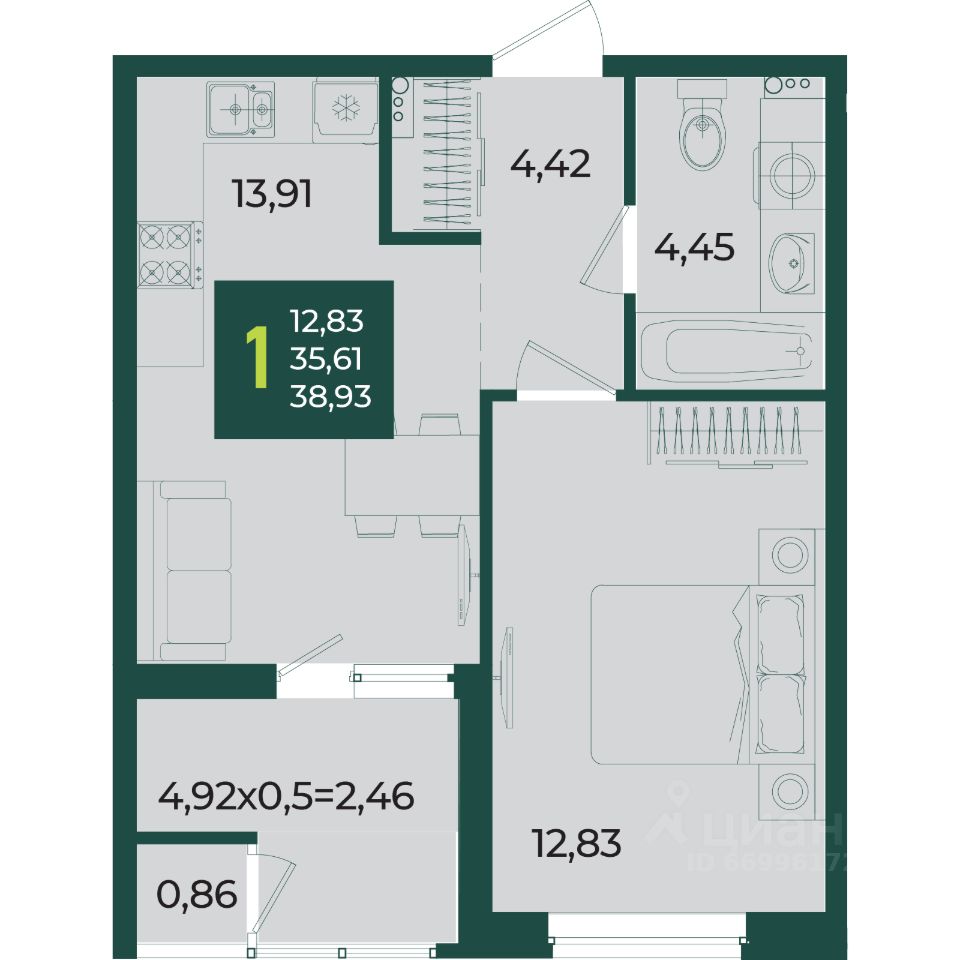 Студия 22.56 м², на 5 этаже в жилом комплексе ''Дом 101''. ЖК Дом 101 - это уникальное пространство на территории 101 га. Парк 20 га с спортивными площадками и амфитеатром. Школа на 1725 мест и пять детских садов. Благоустроенные дворовые территории с детскими площадками и зонами отдыха создают комфортную среду для семей. 1463