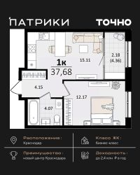 Продаётся 1-комнатная квартира в сданном доме (Литер 22), срок сдачи: III-кв. 2024, общей площадью 35.7 кв.м., на 4 этаже. Микрорайон ''Красная площадь'' - новый, перспективный, масштабный, самодостаточный проект города Краснодар. Здесь создается уникальный зеленый остров, в котором парки займут 30% всей площади. Каждый житель микрорайона найдет необходимое пространство для спокойного отдыха в окружении природы. Для Вас продуманные и комфортные планировки квартир, собственный парк с авторским ландшафтом и уникальная аллея современного искусства с фонтаном, разделение зон в каждой очереди домов для отдыха и спорта, объекты социального значения - и все необходимое для уютной жизни в ритме столицы в шаговой доступности. По сути МКР ''Красная площадь'' - это микрогород с хорошо развитой инфраструктурой, который отличает удачное расположение, ощущение красоты места и гармоничность окружающего пространства. Среди ключевых преимуществ: удобное расположение поблизости от крупнейшего делового и развлекательного кластера (рядом с ВКК ''Экспоград Юг'', через дорогу от МЦ ''Красная Площадь''). Микрорайон составляют лаконичные ансамбли домов, гармонично вписанные в окружающую инфраструктуру благодаря авторской архитектуре и выразительности силуэта всей застройки. В микрорайоне несколько детских дошкольных учреждений, а в каждом дворе спортивные и детские площадки. Вы можете отдыхать всей семьей и найти развлечение на любой вкус. Всего в нескольких минутах от микрорайона находятся различные учебные заведения, а развитая транспортная сеть обеспечит быструю и комфортную поездку. Микрорайон будет радовать пенсионеров своим уникальным архитектурным дизайном, парками и скверами, где можно комфортно проводить время и заводить новых друзей! Рядом с микрорайоном располагаются современные бизнес-центры и офисы - это то, что нужно для карьерного роста молодому специалисту. Современный и уютный микрорайон не оставит равнодушными ни одного приезжего. Приемлемые цены и качество новостроек - лучший вариант приобретения нового жилья. Масштаб - комплексная застройка территории на более, чем 33 Га. Основной идеей данного проекта стало создание среды, совмещающей в себе преимущества жизни в городе (развитая инфраструктура, транспортная доступность, наличие всех необходимых коммуникаций) с прелестями загородной жизни (низкая плотность застройки, обилие зеленых насаждений, благоприятная экологическая обстановка).