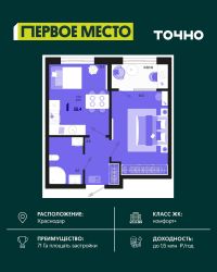 Жилой район ''Первое место''- один из самых масштабных проектов в России. На территории 71 га 18 кварталов, 31 дом переменной этажности от 8 до 18 этажей, собственный парк 9 га, храмовый комплекс, пешеходный бульвар ''Круг семьи'', детские и спортивные площадки, мангальные зоны и различные локации для отдыха. В шаговой доступности действующие муниципальные образовательные учреждения: школа на 1 100 мест и детский сад на 250 мест. Помимо этого, в жилом районе ''Первое место'' построятся школа на 1700 мест с крытым 25-метровым бассейном и 5 детских садов на 1 490 мест. На первых этажах многоуровневых парковок ''паркхабов'' разместится более 61 тыс м2 коммерческих помещений. Жителям будут доступны собственный фитнес-центр, кафе, рестораны и магазины. В каждом подъезде предусмотрены дизайнерские холлы в стиле лобби отелей, консьерж-сервис, лапомойки, отдельные колясочные и велосипедные. Также в домах будут просторные кладовые помещения и комнаты для хранения почты с почтоматами для получения посылок из маркетплейсов.
