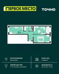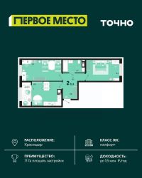 Жилой район ''Первое место''- один из самых масштабных проектов в России. На территории 71 га 18 кварталов, 31 дом переменной этажности от 8 до 18 этажей, собственный парк 9 га, храмовый комплекс, пешеходный бульвар ''Круг семьи'', детские и спортивные площадки, мангальные зоны и различные локации для отдыха. В шаговой доступности действующие муниципальные образовательные учреждения: школа на 1 100 мест и детский сад на 250 мест. Помимо этого, в жилом районе ''Первое место'' построятся школа на 1700 мест с крытым 25-метровым бассейном и 5 детских садов на 1 490 мест. На первых этажах многоуровневых парковок ''паркхабов'' разместится более 61 тыс м2 коммерческих помещений. Жителям будут доступны собственный фитнес-центр, кафе, рестораны и магазины. В каждом подъезде предусмотрены дизайнерские холлы в стиле лобби отелей, консьерж-сервис, лапомойки, отдельные колясочные и велосипедные. Также в домах будут просторные кладовые помещения и комнаты для хранения почты с почтоматами для получения посылок из маркетплейсов.