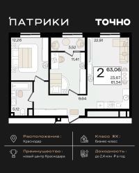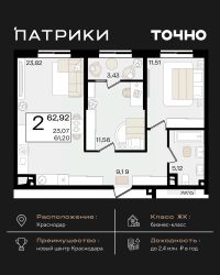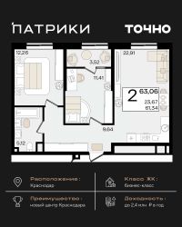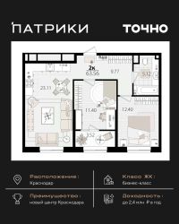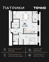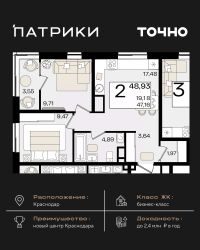 Продается 2 комнатная квартира площадью 52.53 кв. м. на 8 этаже 9 этажного дома, 1 подъезд, номер 67. Стоимость данного лота включает в себя ремонт, мебель и технику. Будут представлены 3 варианта обустройства квартиры: светлый, тонированный и авторский. Для более подробного ознакомления вы можете обратиться в отдел продаж. Жилой комплекс ''ИНАЧЕ в Молодежном'' включает в себя 14 домов комфорт+ класса переменной этажности с более чем 100 видами планировок, в том числе квартиры с террасами, двухуровневые квартиры и урбан виллы, детский сад на 350 мест, храм, 2 наземных паркинга, а также бульвар и прогулочные аллеи. Срок сдачи первой очереди 4 квартал 2026 года Жилой комплекс находится в Молодежном — тихом микрорайоне с атмосферой размеренной жизни. Рядом расположен зеленый сквер ''Изумрудный'' с зелеными деревьями и велодорожками. Молодежный — молодой район с готовой инфраструктурой. Всю бытовую и семейную можно легко организовать на расстоянии 10 минут от дома. Есть новая школа, два детских сада, поликлиника, работают магазины, аптеки и салоны красоты. Жилой комплекс расположен рядом с удобными выездами на ключевые городские дороги. Можно быстро доехать как в центр города, так и до моря по Ейскому шоссе. Главные чувства от прогулки по нашему району простота и легкость. Архитектуру мы проработали совместно с архитектурным бюро Маликова и создали район с современным лаконичным обликом. При этом мы учли сценарии жизни людей и современные тренды. В наших домах будут разноэтажные секции. Французские балконы и увеличенные окна. На фасадах не будет визуального шума: кондиционеры будут скрыты с специальных корзинах. По всей территории продумана безбарьерная сеть тротуаров и переходов. Любое перемещение — пешком или с коляской — станет комфортным. - На территории комплекса будут расположены детские и спортивные площадки, а также амфитеатр, арт-объект и храм. - 40% территории занимает озеленение с более чем 50 видами растений. - Хранить автомобиль с комфортом и беречь его от осадков помогут два наземных многоуровневых паркинга. Кроме крытых паркингов, на территории есть открытые — в достаточном числе для жителей и гостей района. - Проект включает в себя строительство современного детского сада и так же в пешей доступности находятся 2 школы. - На первых этажах мы создадим коммерческие помещения с планировками, которые помогают бизнесу. Умный проект коммерции включает удобные входные группы, высокие потолки и панорамные окна, приглашающие заглянуть внутрь. - Эстетика холла продолжает природную идею района. Дизайнерские холлы выполненные в натуральных цветах с живыми деревьями включают в себя места для ожидания, встреч, санузлы, колясочные и постаматы. - Система аудиомультирум в каждой квартир - распределение аудио- и видео-сигналов по всей квартире. Для более подробного ознакомления вы можете обратиться в отдел продаж.