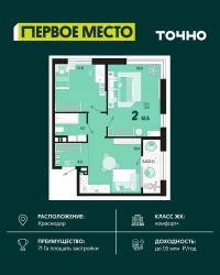 В монолитно-кирпичном доме, рядом с парком ''Краснодар'' продается 2-комнатная квартира. В просторной прихожей легко поместятся гардеробная, обувница, тумба для мелочей, банкетки и пр. В большой кухне будет легко организовать рабочую и столовую зоны. Большие, светлые комнаты отлично подойдут для уютной спальни и стильной гостиной. Дом сдан, выполнена пред чистовая отделка. ВЫГОДНОЕ РАСПОЛОЖЕНИЕКвартира находится в одном из самых привлекательных районов города, рядом с грандиозным парком Краснодар. Жить рядом с таким парком здорово, ведь до Японского сада, Парка облаков, озер с рыбами, экзотических деревьев и необычных арт-объектов буквально рукой подать. Район очень развит, все находится в шаговой доступности: школы и детские сады, поликлиники, фермерский рынок, Перекресток, Магнит, Пятерочка, торговые центры, ветеринарные клиники. детские обучающие центры, кафе и рестораны, академия ФК ''Краснодар''. ОТДЕЛКАКвартира продается в предчистовой отделке в формате White box: - Качественная металлическая входная дверь с надежным замком- Ровные, отшлифованные стены- Стяжка пола под финишное покрытие- Окна с отличной звуко- и теплоизоляцией- Застекленные балконы и лоджии- Электрика: узел учета и входным автоматом и разводкой по квартире- Выпуски коммуникаций- Для сплит-систем установлены корзины с декоративными ламелямиКОМФОРТТерритория комплекса закрытая, есть видеонаблюдение. Во дворах взрослые деревья, декоративные кустарники и рулонные газоны с автополивом. Для детей созданы интересные игровые аттракционы с безопасным покрытием. Для детей постарше - классная зона паркура. На 1 и 2 этажах дома расположена торговая галерея. Вечером, когда включается архитектурная подсветка, дома выглядят особенно красиво. ПРЕДЛОЖЕНИЕ МЕСЯЦАСкидка на парко место в многоуровневом паркинге при покупке квартиры. Предложение ограничено, подробности уточняйте у менеджера по телефону. ГИБКИЕ ВАРИАНТЫ ПРИОБРЕТЕНИЯКак застройщик, который более 30 лет на рынке, мы готовы предложить большой выбор вариантов приобретения этой квартиры:- Наличный расчет- Беспроцентная рассрочка- Маткапитал- Ипотека.Мы работаем напрямую со всеми крупными банками, и наши ипотечные специалисты возьмут на себя хлопоты по оформлению.Кстати, если у вас есть дети, вы можете воспользоваться семейной ипотекой с низкой ставкой от 6%. Льготные условия для студентов, пенсионеров, военнослужащих и участников СВО!Позвоните, и наши менеджеры вас подробно проконсультируют. Или приезжайте, и мы проведем для вас экскурсию, покажем квартиры и район и поможем подобрать максимально комфортные условия покупки этой квартиры.