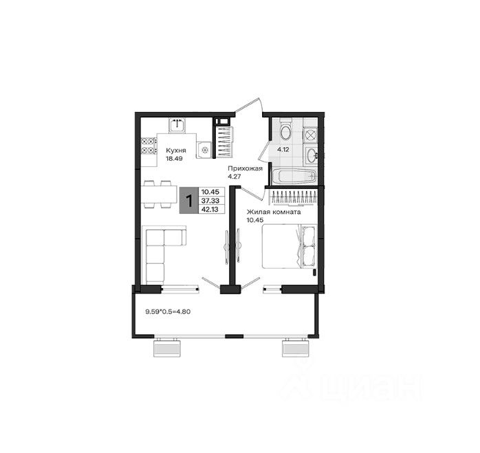 42 м² · Этаж 4 из 20