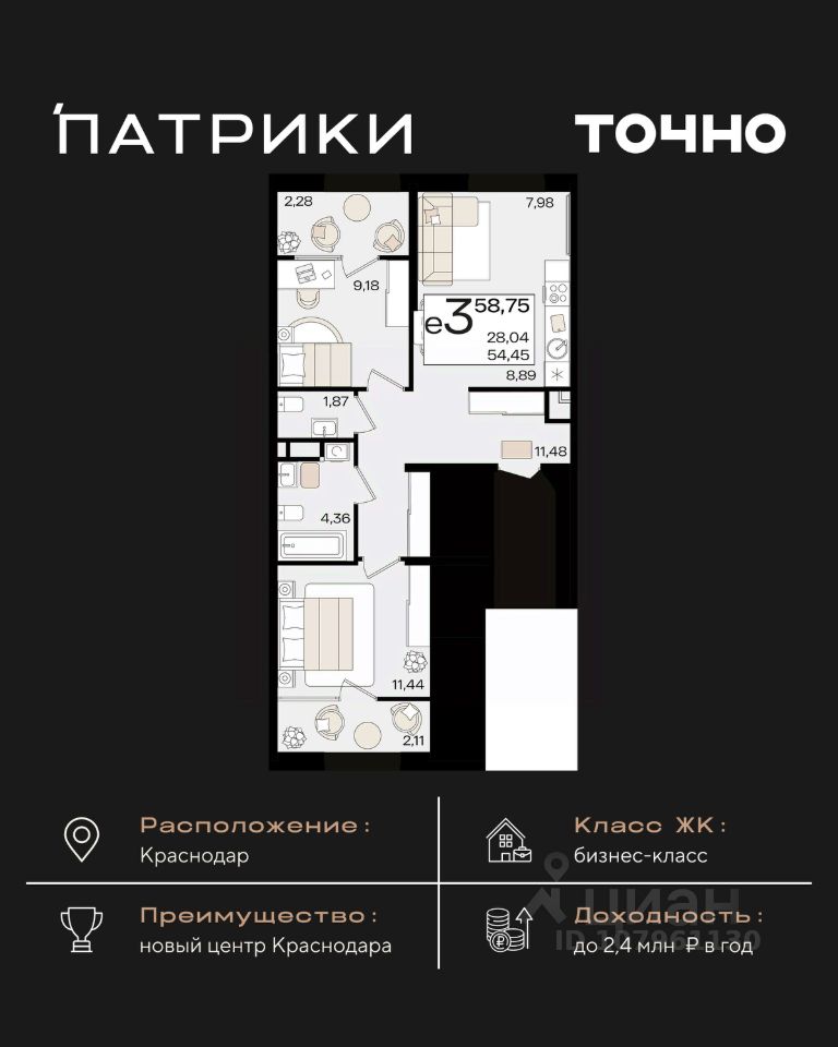 Проект ПРЕМИУМ-КЛАССА в центре Краснодара. Фестивальный микрорайон, ''Поле Чудес''. Дом сдан! ТОЛЬКО В ДЕКБРЕ! ЭКСКЛЮЗИВНАЯ ВЫГОДА НА ОГРАНИЧЕННЫЙ РЯД КВАРТИР в ЖК ''ЕКАТЕРИНИНСКИЙ ПАРК'': •на 1 ком. и 2 ком. - до 20 000 р/м2. •на 3 ком. - до 25 000 р/м2. А также льготные условия приобретения по программе ''Семейная ипотека'': • Ипотечная ставка 6% на весь срок • Минимальный первый взнос от 20% • Возможность оформления ипотеки на каждого родителя Торопитесь взять семейную ипотеку на текущих условиях - совсем скоро программа ужесточится. ЖК ''Екатерининский парк'' - лучший девелоперский проект 2024 по версии ИД ''Коммерсант'' (в ежегодной премии ''Твердые знаки''). Здесь не просто квадратные метры, а атмосфера комфорта и приватности: • Авторская архитектура • Каскадная застройка: от малоэтажных домов 3 этажа к высотным доминантам • Элегантная баварская кладка • Подземный паркинг • Два собственных детских сада • Закрытая территория: система доступа в ЖК только для резидентов • Двор-парк с фонтаном • Зоны отдыха и барбекю • Детские эко-площадки и зоны кроссфита Премиум-подход в каждой детали: Консьерж-сервис Охрана 24/7 Дизайнерские лобби Система ''Умный дом'' Потолки 3,1м Резиденции на выбор: от уютных видовых квартир до масштабных резиденций до 500 м² Успейте забронировать жилье бизнес-класса с эксклюзивной выгодой. До ужесточения ''Семейной ипотеки'' осталось немного - торопитесь оформить, пока действуют текущие условия. Звоните прямо сейчас!