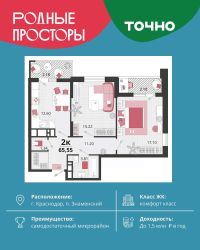 ''Родные просторы''- самодостаточный микрорайон, который реализован по принципу комплексного развития территории, где есть вся инфраструктура для комфортной жизни. На территории 41 га 29 домов от 9 до 24 этажей, уютные дворы со спортивными и игровыми площадками, социальные и коммерческие объекты, зеленые массивы и фонтаны. Главная точка притяжения ''Родных просторов'' - парк семейного отдыха площадью 9 га, 4,5 км прогулочных аллей, амфитеатр для мероприятий, кинофестивальная площадка. Особая гордость микрорайона современная школа на 1550 мест и 3 детских сада ''Ладушки'', ''Веснушки'' и ''Топотушки'' на 880 малышей. В центре микрорайона строятся фитнес-клуб BALANCE с акватермальным комплексом и собственная поликлиника, площадью более 5000 кв.м. Уже открыт православный храм Святых Первоверховных апостолов Петра и Павла.