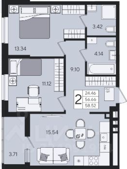 58 м2