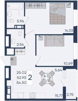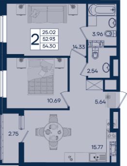 2-к квартира Показать на карте