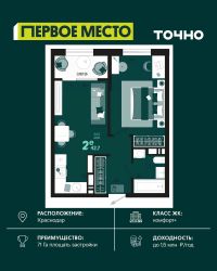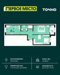 Продается 2 комнатная квартира площадью 58.39 кв. м. на 10 этаже 18 этажного дома, 1 подъезд, номер 107. Стоимость данного лота включает в себя ремонт, мебель и технику. Будут представлены 3 варианта обустройства квартиры: светлый, тонированный и авторский. Для более подробного ознакомления вы можете обратиться в отдел продаж. Жилой комплекс ''ИНАЧЕ в Молодежном'' включает в себя 14 домов комфорт+ класса переменной этажности с более чем 100 видами планировок, в том числе квартиры с террасами, двухуровневые квартиры и урбан виллы, детский сад на 350 мест, храм, 2 наземных паркинга, а также бульвар и прогулочные аллеи. Срок сдачи первой очереди 4 квартал 2026 года Жилой комплекс находится в Молодежном — тихом микрорайоне с атмосферой размеренной жизни. Рядом расположен зеленый сквер ''Изумрудный'' с зелеными деревьями и велодорожками. Молодежный — молодой район с готовой инфраструктурой. Всю бытовую и семейную можно легко организовать на расстоянии 10 минут от дома. Есть новая школа, два детских сада, поликлиника, работают магазины, аптеки и салоны красоты. Жилой комплекс расположен рядом с удобными выездами на ключевые городские дороги. Можно быстро доехать как в центр города, так и до моря по Ейскому шоссе. Главные чувства от прогулки по нашему району простота и легкость. Архитектуру мы проработали совместно с архитектурным бюро Маликова и создали район с современным лаконичным обликом. При этом мы учли сценарии жизни людей и современные тренды. В наших домах будут разноэтажные секции. Французские балконы и увеличенные окна. На фасадах не будет визуального шума: кондиционеры будут скрыты с специальных корзинах. По всей территории продумана безбарьерная сеть тротуаров и переходов. Любое перемещение — пешком или с коляской — станет комфортным. - На территории комплекса будут расположены детские и спортивные площадки, а также амфитеатр, арт-объект и храм. - 40% территории занимает озеленение с более чем 50 видами растений. - Хранить автомобиль с комфортом и беречь его от осадков помогут два наземных многоуровневых паркинга. Кроме крытых паркингов, на территории есть открытые — в достаточном числе для жителей и гостей района. - Проект включает в себя строительство современного детского сада и так же в пешей доступности находятся 2 школы. - На первых этажах мы создадим коммерческие помещения с планировками, которые помогают бизнесу. Умный проект коммерции включает удобные входные группы, высокие потолки и панорамные окна, приглашающие заглянуть внутрь. - Эстетика холла продолжает природную идею района. Дизайнерские холлы выполненные в натуральных цветах с живыми деревьями включают в себя места для ожидания, встреч, санузлы, колясочные и постаматы. - Система аудиомультирум в каждой квартир - распределение аудио- и видео-сигналов по всей квартире. Для более подробного ознакомления вы можете обратиться в отдел продаж.