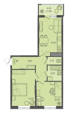 2 комнатная квартира с ремонтом 54.17 м², на 2 этаже в жилом комплексе ''Дом 101''. ЖК Дом 101 - это уникальное пространство на территории 101 га. Парк 20 га с спортивными площадками и амфитеатром. Школа на 1725 мест и пять детских садов. Благоустроенные дворовые территории с детскими площадками и зонами отдыха создают комфортную среду для семей. 457