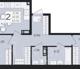 2 комнатная квартира с ремонтом 64.13 м², на 12 этаже в жилом комплексе ''Дом 101''. ЖК Дом 101 - это уникальное пространство на территории 101 га. Парк 20 га с спортивными площадками и амфитеатром. Школа на 1725 мест и пять детских садов. Благоустроенные дворовые территории с детскими площадками и зонами отдыха создают комфортную среду для семей. 550