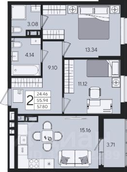 2-к квартира Показать на карте