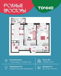 ''Родные просторы''- самодостаточный микрорайон, который реализован по принципу комплексного развития территории, где есть вся инфраструктура для комфортной жизни. На территории 41 га 29 домов от 9 до 24 этажей, уютные дворы со спортивными и игровыми площадками, социальные и коммерческие объекты, зеленые массивы и фонтаны. Главная точка притяжения ''Родных просторов'' - парк семейного отдыха площадью 9 га, 4,5 км прогулочных аллей, амфитеатр для мероприятий, кинофестивальная площадка. Особая гордость микрорайона современная школа на 1550 мест и 3 детских сада ''Ладушки'', ''Веснушки'' и ''Топотушки'' на 880 малышей. В центре микрорайона строятся фитнес-клуб BALANCE с акватермальным комплексом и собственная поликлиника, площадью более 5000 кв.м. Уже открыт православный храм Святых Первоверховных апостолов Петра и Павла.