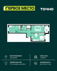Продаётся 2-комнатная квартира в строящемся доме (Литер 21), срок сдачи: IV-кв. 2026, общей площадью 54.2 кв.м., на 13 этаже. Жилой комплекс ''Фонтаны'' - дом клубного типа. Преимущество заключается в продуманном ландшафте дворов, круглосуточно охраняемой территории, системе видеонаблюдения во дворе. Также для удобства жителей проведен Wi-Fi во дворе, оборудованы безопасные и современные детские площадки, зоны отдыха. ЖК ''Фонтаны'' расположен в микрорайоне Черёмушки. Отличная транспортная развязка позволяет быстро и с комфортом добраться до центра, а большое количество зеленых насаждений и парков дает возможность гулять с детьми и наслаждаться прекрасным видом на Кубань. Планировки квартир от студий до просторных четырехкомнатных позволяют воплотить неповторимые дизайнерские проекты. А панорамное остекление дарит потрясающие виды на реку Кубань. В проекте жилого комплекса предусмотрены все нюансы. Если в вашей семье есть маленькие дети, на первом этаже размещены комнаты для хранения колясок. Современные пассажирский и грузовой лифты позволяют жителям не только передвигаться самостоятельно, но и без труда и безопасно доставлять до нужных этажей строительные материалы во время ремонта. ''Фонтаны'' дарит тепло своим жителям. А все потому, что для комплекса оборудована технологичная котельная, которая не вредит окружающей среде. Не возникнет проблем с подачей энергии - электрические сети надежны и высокоэффективны. Еще одно преимущество комплекса - вентилируемый фасад, используемый в строительстве. Такие технологии не только удерживают тепло в доме, но и обладают высокой шумоизоляцией. Вентилируемые фасады - долговечная система, которая не требует ремонта на протяжении многих лет.