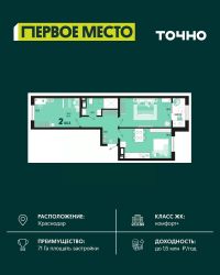 Жилой район ''Первое место''- один из самых масштабных проектов в России. На территории 71 га 18 кварталов, 31 дом переменной этажности от 8 до 18 этажей, собственный парк 9 га, храмовый комплекс, пешеходный бульвар ''Круг семьи'', детские и спортивные площадки, мангальные зоны и различные локации для отдыха. В шаговой доступности действующие муниципальные образовательные учреждения: школа на 1 100 мест и детский сад на 250 мест. Помимо этого, в жилом районе ''Первое место'' построятся школа на 1700 мест с крытым 25-метровым бассейном и 5 детских садов на 1 490 мест. На первых этажах многоуровневых парковок ''паркхабов'' разместится более 61 тыс м2 коммерческих помещений. Жителям будут доступны собственный фитнес-центр, кафе, рестораны и магазины. В каждом подъезде предусмотрены дизайнерские холлы в стиле лобби отелей, консьерж-сервис, лапомойки, отдельные колясочные и велосипедные. Также в домах будут просторные кладовые помещения и комнаты для хранения почты с почтоматами для получения посылок из маркетплейсов.