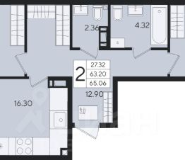 2-к квартира Показать на карте