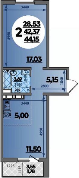 44 м2