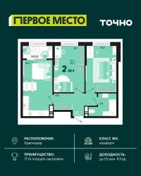 Продается 2 комнатная квартира площадью 54.7 кв. м. на 10 этаже 18 этажного дома, 1 подъезд, номер 110. Стоимость данного лота включает в себя ремонт, мебель и технику. Будут представлены 3 варианта обустройства квартиры: светлый, тонированный и авторский. Для более подробного ознакомления вы можете обратиться в отдел продаж. Жилой комплекс ''ИНАЧЕ в Молодежном'' включает в себя 14 домов комфорт+ класса переменной этажности с более чем 100 видами планировок, в том числе квартиры с террасами, двухуровневые квартиры и урбан виллы, детский сад на 350 мест, храм, 2 наземных паркинга, а также бульвар и прогулочные аллеи. Срок сдачи первой очереди 4 квартал 2026 года Жилой комплекс находится в Молодежном — тихом микрорайоне с атмосферой размеренной жизни. Рядом расположен зеленый сквер ''Изумрудный'' с зелеными деревьями и велодорожками. Молодежный — молодой район с готовой инфраструктурой. Всю бытовую и семейную можно легко организовать на расстоянии 10 минут от дома. Есть новая школа, два детских сада, поликлиника, работают магазины, аптеки и салоны красоты. Жилой комплекс расположен рядом с удобными выездами на ключевые городские дороги. Можно быстро доехать как в центр города, так и до моря по Ейскому шоссе. Главные чувства от прогулки по нашему району простота и легкость. Архитектуру мы проработали совместно с архитектурным бюро Маликова и создали район с современным лаконичным обликом. При этом мы учли сценарии жизни людей и современные тренды. В наших домах будут разноэтажные секции. Французские балконы и увеличенные окна. На фасадах не будет визуального шума: кондиционеры будут скрыты с специальных корзинах. По всей территории продумана безбарьерная сеть тротуаров и переходов. Любое перемещение — пешком или с коляской — станет комфортным. - На территории комплекса будут расположены детские и спортивные площадки, а также амфитеатр, арт-объект и храм. - 40% территории занимает озеленение с более чем 50 видами растений. - Хранить автомобиль с комфортом и беречь его от осадков помогут два наземных многоуровневых паркинга. Кроме крытых паркингов, на территории есть открытые — в достаточном числе для жителей и гостей района. - Проект включает в себя строительство современного детского сада и так же в пешей доступности находятся 2 школы. - На первых этажах мы создадим коммерческие помещения с планировками, которые помогают бизнесу. Умный проект коммерции включает удобные входные группы, высокие потолки и панорамные окна, приглашающие заглянуть внутрь. - Эстетика холла продолжает природную идею района. Дизайнерские холлы выполненные в натуральных цветах с живыми деревьями включают в себя места для ожидания, встреч, санузлы, колясочные и постаматы. - Система аудиомультирум в каждой квартир - распределение аудио- и видео-сигналов по всей квартире. Для более подробного ознакомления вы можете обратиться в отдел продаж.