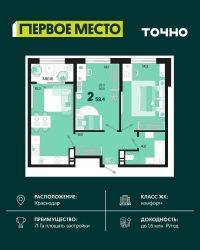 Жилой район ''Первое место''- один из самых масштабных проектов в России. На территории 71 га 18 кварталов, 31 дом переменной этажности от 8 до 18 этажей, собственный парк 9 га, храмовый комплекс, пешеходный бульвар ''Круг семьи'', детские и спортивные площадки, мангальные зоны и различные локации для отдыха. В шаговой доступности действующие муниципальные образовательные учреждения: школа на 1 100 мест и детский сад на 250 мест. Помимо этого, в жилом районе ''Первое место'' построятся школа на 1700 мест с крытым 25-метровым бассейном и 5 детских садов на 1 490 мест. На первых этажах многоуровневых парковок ''паркхабов'' разместится более 61 тыс м2 коммерческих помещений. Жителям будут доступны собственный фитнес-центр, кафе, рестораны и магазины. В каждом подъезде предусмотрены дизайнерские холлы в стиле лобби отелей, консьерж-сервис, лапомойки, отдельные колясочные и велосипедные. Также в домах будут просторные кладовые помещения и комнаты для хранения почты с почтоматами для получения посылок из маркетплейсов.