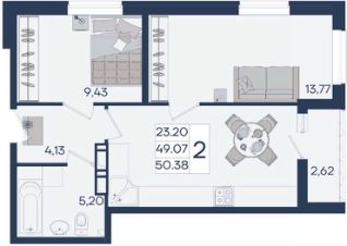 📚 Какая площадь двухкомнатных квартир?