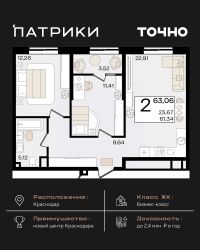 2-к квартира Показать на карте