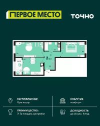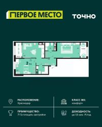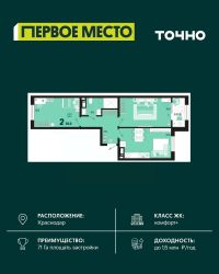 Продается 2 комнатная квартира площадью 62.33 кв. м. на 15 этаже 18 этажного дома, 1 подъезд, номер 161. Стоимость данного лота включает в себя ремонт, мебель и технику. Будут представлены 3 варианта обустройства квартиры: светлый, тонированный и авторский. Для более подробного ознакомления вы можете обратиться в отдел продаж. Жилой комплекс ''ИНАЧЕ в Молодежном'' включает в себя 14 домов комфорт+ класса переменной этажности с более чем 100 видами планировок, в том числе квартиры с террасами, двухуровневые квартиры и урбан виллы, детский сад на 350 мест, храм, 2 наземных паркинга, а также бульвар и прогулочные аллеи. Срок сдачи первой очереди 4 квартал 2026 года Жилой комплекс находится в Молодежном — тихом микрорайоне с атмосферой размеренной жизни. Рядом расположен зеленый сквер ''Изумрудный'' с зелеными деревьями и велодорожками. Молодежный — молодой район с готовой инфраструктурой. Всю бытовую и семейную можно легко организовать на расстоянии 10 минут от дома. Есть новая школа, два детских сада, поликлиника, работают магазины, аптеки и салоны красоты. Жилой комплекс расположен рядом с удобными выездами на ключевые городские дороги. Можно быстро доехать как в центр города, так и до моря по Ейскому шоссе. Главные чувства от прогулки по нашему району простота и легкость. Архитектуру мы проработали совместно с архитектурным бюро Маликова и создали район с современным лаконичным обликом. При этом мы учли сценарии жизни людей и современные тренды. В наших домах будут разноэтажные секции. Французские балконы и увеличенные окна. На фасадах не будет визуального шума: кондиционеры будут скрыты с специальных корзинах. По всей территории продумана безбарьерная сеть тротуаров и переходов. Любое перемещение — пешком или с коляской — станет комфортным. - На территории комплекса будут расположены детские и спортивные площадки, а также амфитеатр, арт-объект и храм. - 40% территории занимает озеленение с более чем 50 видами растений. - Хранить автомобиль с комфортом и беречь его от осадков помогут два наземных многоуровневых паркинга. Кроме крытых паркингов, на территории есть открытые — в достаточном числе для жителей и гостей района. - Проект включает в себя строительство современного детского сада и так же в пешей доступности находятся 2 школы. - На первых этажах мы создадим коммерческие помещения с планировками, которые помогают бизнесу. Умный проект коммерции включает удобные входные группы, высокие потолки и панорамные окна, приглашающие заглянуть внутрь. - Эстетика холла продолжает природную идею района. Дизайнерские холлы выполненные в натуральных цветах с живыми деревьями включают в себя места для ожидания, встреч, санузлы, колясочные и постаматы. - Система аудиомультирум в каждой квартир - распределение аудио- и видео-сигналов по всей квартире. Для более подробного ознакомления вы можете обратиться в отдел продаж.
