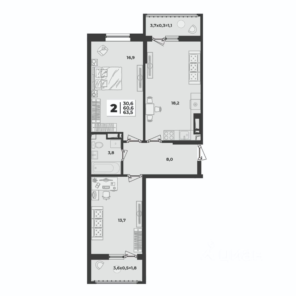 37 м² · Этаж 3 из 16