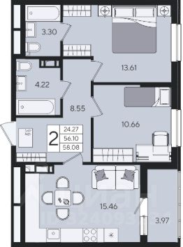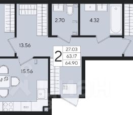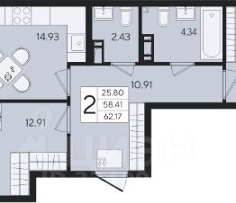 2-к квартира Показать на карте