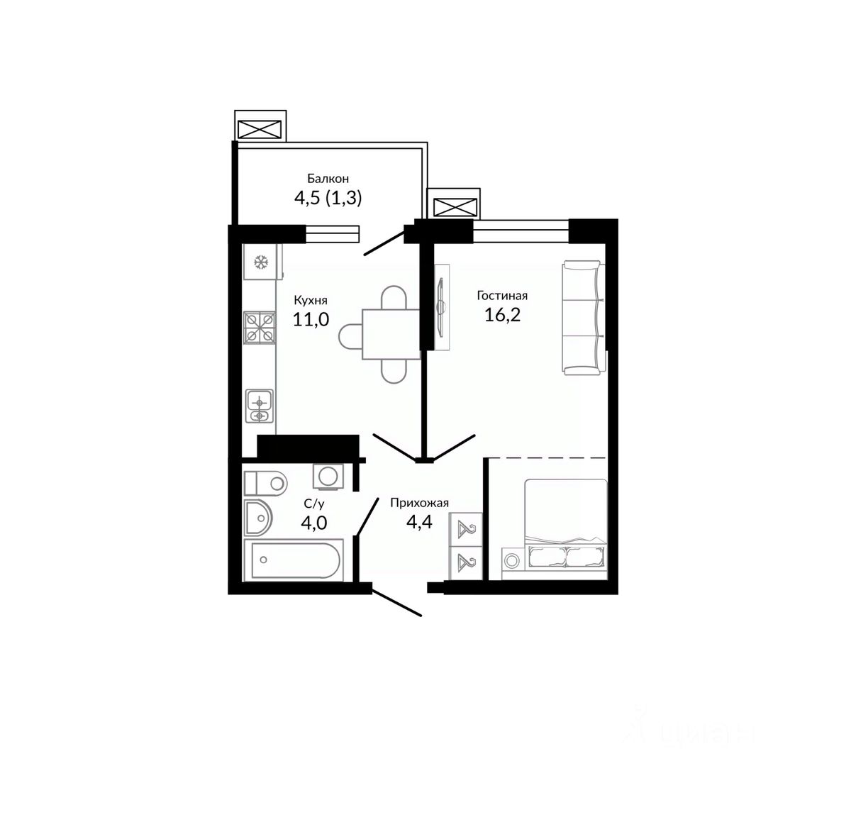 24 м² · Этаж 4 из 4