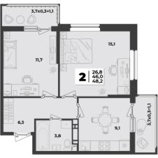 Продаётся 2-комнатная квартира в строящемся доме (Литер 2.1), срок сдачи: IV-кв. 2026, общей площадью 48.2 кв.м., на 2 этаже. Новый жилой комплекс ''Лето'' от застройщика ''ГК Дарстрой'' расположен по адресу город Краснодар, улица Западный Обход.