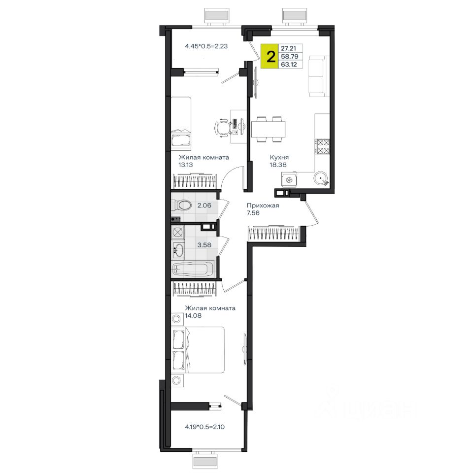 63 м² · Этаж 5 из 8