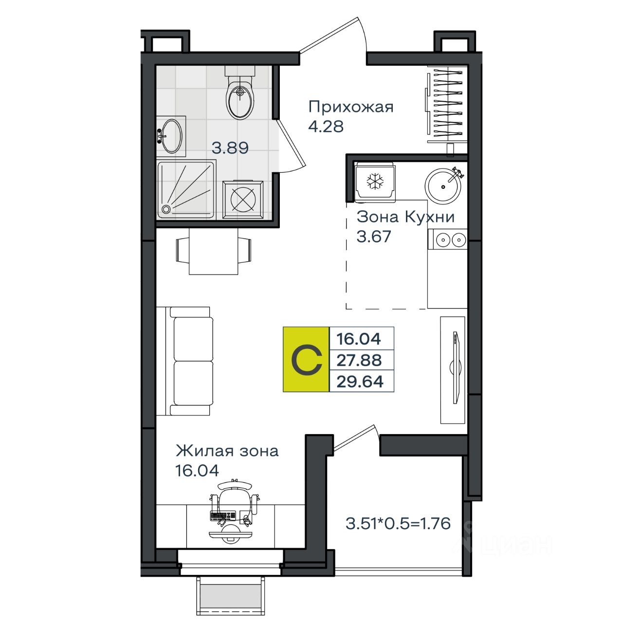24 м² · Этаж 11 из 16