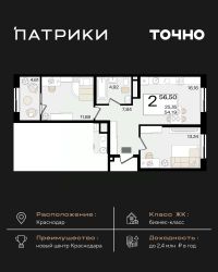 Продаётся 2-комнатная квартира в сданном доме (Дом 12 Корпус 7), срок сдачи: IV-кв. 2023, общей площадью 59.4 кв.м., на 10 этаже. Микрорайон ''Красная площадь'' - новый, перспективный, масштабный, самодостаточный проект города Краснодар. Здесь создается уникальный зеленый остров, в котором парки займут 30% всей площади. Каждый житель микрорайона найдет необходимое пространство для спокойного отдыха в окружении природы. Для Вас продуманные и комфортные планировки квартир, собственный парк с авторским ландшафтом и уникальная аллея современного искусства с фонтаном, разделение зон в каждой очереди домов для отдыха и спорта, объекты социального значения - и все необходимое для уютной жизни в ритме столицы в шаговой доступности. По сути МКР ''Красная площадь'' - это микрогород с хорошо развитой инфраструктурой, который отличает удачное расположение, ощущение красоты места и гармоничность окружающего пространства. Среди ключевых преимуществ: удобное расположение поблизости от крупнейшего делового и развлекательного кластера (рядом с ВКК ''Экспоград Юг'', через дорогу от МЦ ''Красная Площадь''). Микрорайон составляют лаконичные ансамбли домов, гармонично вписанные в окружающую инфраструктуру благодаря авторской архитектуре и выразительности силуэта всей застройки. В микрорайоне несколько детских дошкольных учреждений, а в каждом дворе спортивные и детские площадки. Вы можете отдыхать всей семьей и найти развлечение на любой вкус. Всего в нескольких минутах от микрорайона находятся различные учебные заведения, а развитая транспортная сеть обеспечит быструю и комфортную поездку. Микрорайон будет радовать пенсионеров своим уникальным архитектурным дизайном, парками и скверами, где можно комфортно проводить время и заводить новых друзей! Рядом с микрорайоном располагаются современные бизнес-центры и офисы - это то, что нужно для карьерного роста молодому специалисту. Современный и уютный микрорайон не оставит равнодушными ни одного приезжего. Приемлемые цены и качество новостроек - лучший вариант приобретения нового жилья. Масштаб - комплексная застройка территории на более, чем 33 Га. Основной идеей данного проекта стало создание среды, совмещающей в себе преимущества жизни в городе (развитая инфраструктура, транспортная доступность, наличие всех необходимых коммуникаций) с прелестями загородной жизни (низкая плотность застройки, обилие зеленых насаждений, благоприятная экологическая обстановка).