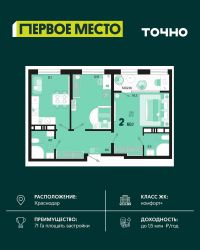 Продается 2 комнатная квартира площадью 52.53 кв. м. на 2 этаже 9 этажного дома, 1 подъезд, номер 1. Стоимость данного лота включает в себя ремонт, мебель и технику. Будут представлены 3 варианта обустройства квартиры: светлый, тонированный и авторский. Для более подробного ознакомления вы можете обратиться в отдел продаж. Жилой комплекс ''ИНАЧЕ в Молодежном'' включает в себя 14 домов комфорт+ класса переменной этажности с более чем 100 видами планировок, в том числе квартиры с террасами, двухуровневые квартиры и урбан виллы, детский сад на 350 мест, храм, 2 наземных паркинга, а также бульвар и прогулочные аллеи. Срок сдачи первой очереди 4 квартал 2026 года Жилой комплекс находится в Молодежном — тихом микрорайоне с атмосферой размеренной жизни. Рядом расположен зеленый сквер ''Изумрудный'' с зелеными деревьями и велодорожками. Молодежный — молодой район с готовой инфраструктурой. Всю бытовую и семейную можно легко организовать на расстоянии 10 минут от дома. Есть новая школа, два детских сада, поликлиника, работают магазины, аптеки и салоны красоты. Жилой комплекс расположен рядом с удобными выездами на ключевые городские дороги. Можно быстро доехать как в центр города, так и до моря по Ейскому шоссе. Главные чувства от прогулки по нашему району простота и легкость. Архитектуру мы проработали совместно с архитектурным бюро Маликова и создали район с современным лаконичным обликом. При этом мы учли сценарии жизни людей и современные тренды. В наших домах будут разноэтажные секции. Французские балконы и увеличенные окна. На фасадах не будет визуального шума: кондиционеры будут скрыты с специальных корзинах. По всей территории продумана безбарьерная сеть тротуаров и переходов. Любое перемещение — пешком или с коляской — станет комфортным. - На территории комплекса будут расположены детские и спортивные площадки, а также амфитеатр, арт-объект и храм. - 40% территории занимает озеленение с более чем 50 видами растений. - Хранить автомобиль с комфортом и беречь его от осадков помогут два наземных многоуровневых паркинга. Кроме крытых паркингов, на территории есть открытые — в достаточном числе для жителей и гостей района. - Проект включает в себя строительство современного детского сада и так же в пешей доступности находятся 2 школы. - На первых этажах мы создадим коммерческие помещения с планировками, которые помогают бизнесу. Умный проект коммерции включает удобные входные группы, высокие потолки и панорамные окна, приглашающие заглянуть внутрь. - Эстетика холла продолжает природную идею района. Дизайнерские холлы выполненные в натуральных цветах с живыми деревьями включают в себя места для ожидания, встреч, санузлы, колясочные и постаматы. - Система аудиомультирум в каждой квартир - распределение аудио- и видео-сигналов по всей квартире. Для более подробного ознакомления вы можете обратиться в отдел продаж.