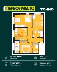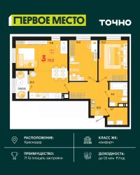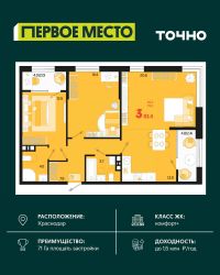 Жилой район ''Первое место''- один из самых масштабных проектов в России. На территории 71 га 18 кварталов, 31 дом переменной этажности от 8 до 18 этажей, собственный парк 9 га, храмовый комплекс, пешеходный бульвар ''Круг семьи'', детские и спортивные площадки, мангальные зоны и различные локации для отдыха. В шаговой доступности действующие муниципальные образовательные учреждения: школа на 1 100 мест и детский сад на 250 мест. Помимо этого, в жилом районе ''Первое место'' построятся школа на 1700 мест с крытым 25-метровым бассейном и 5 детских садов на 1 490 мест. На первых этажах многоуровневых парковок ''паркхабов'' разместится более 61 тыс м2 коммерческих помещений. Жителям будут доступны собственный фитнес-центр, кафе, рестораны и магазины. В каждом подъезде предусмотрены дизайнерские холлы в стиле лобби отелей, консьерж-сервис, лапомойки, отдельные колясочные и велосипедные. Также в домах будут просторные кладовые помещения и комнаты для хранения почты с почтоматами для получения посылок из маркетплейсов.