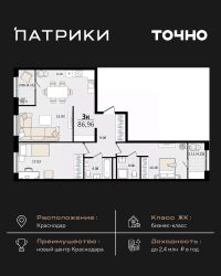 Флагманский проект группы компаний Точно - жилой комплекс бизнес-класса Патрики, это 10 домов разной этажности расположившихся на 28,5 гектарах. Жилой комплекс с концепцией город в город - прогулочные аллеи, парковая территория, 3 детских сада, 2 школы - одна из которых частная, Гранд аллея с ресторанами, фонтанами и модными бутиками, уникальные мафы и ландшафтный дизайн, создают особую атмосферу - место в котором хочется находиться. В Патриках предусмотрен и креативный кластер Цех, который включает в себя пространство для коворкинга, фудкорт, бутики, детский комплекс, лектории, фитнес-клуб Баланс с волной для сёрфа. Но и это еще не все ГК Точно уважает историю, поэтому мы сохранили 2 башни - наследство от завода ''Сельмаш'' исторический арт-объект назвали Мастер и Маргарита.
