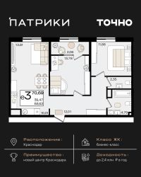 Флагманский проект группы компаний Точно - жилой комплекс бизнес-класса Патрики, это 10 домов разной этажности расположившихся на 28,5 гектарах. Жилой комплекс с концепцией город в город - прогулочные аллеи, парковая территория, 3 детских сада, 2 школы - одна из которых частная, Гранд аллея с ресторанами, фонтанами и модными бутиками, уникальные мафы и ландшафтный дизайн, создают особую атмосферу - место в котором хочется находиться. В Патриках предусмотрен и креативный кластер Цех, который включает в себя пространство для коворкинга, фудкорт, бутики, детский комплекс, лектории, фитнес-клуб Баланс с волной для сёрфа. Но и это еще не все ГК Точно уважает историю, поэтому мы сохранили 2 башни - наследство от завода ''Сельмаш'' исторический арт-объект назвали Мастер и Маргарита.