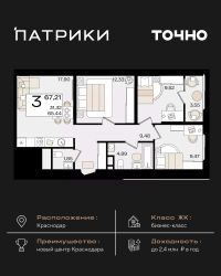 3-к квартира Показать на карте