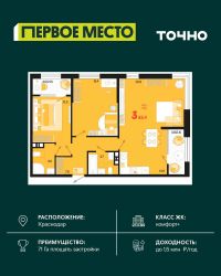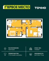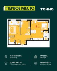 Жилой район ''Первое место''- один из самых масштабных проектов в России. На территории 71 га 18 кварталов, 31 дом переменной этажности от 8 до 18 этажей, собственный парк 9 га, храмовый комплекс, пешеходный бульвар ''Круг семьи'', детские и спортивные площадки, мангальные зоны и различные локации для отдыха. В шаговой доступности действующие муниципальные образовательные учреждения: школа на 1 100 мест и детский сад на 250 мест. Помимо этого, в жилом районе ''Первое место'' построятся школа на 1700 мест с крытым 25-метровым бассейном и 5 детских садов на 1 490 мест. На первых этажах многоуровневых парковок ''паркхабов'' разместится более 61 тыс м2 коммерческих помещений. Жителям будут доступны собственный фитнес-центр, кафе, рестораны и магазины. В каждом подъезде предусмотрены дизайнерские холлы в стиле лобби отелей, консьерж-сервис, лапомойки, отдельные колясочные и велосипедные. Также в домах будут просторные кладовые помещения и комнаты для хранения почты с почтоматами для получения посылок из маркетплейсов.