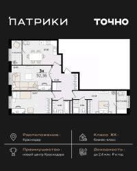 Флагманский проект группы компаний Точно - жилой комплекс бизнес-класса Патрики, это 10 домов разной этажности расположившихся на 28,5 гектарах. Жилой комплекс с концепцией город в город - прогулочные аллеи, парковая территория, 3 детских сада, 2 школы - одна из которых частная, Гранд аллея с ресторанами, фонтанами и модными бутиками, уникальные мафы и ландшафтный дизайн, создают особую атмосферу - место в котором хочется находиться. В Патриках предусмотрен и креативный кластер Цех, который включает в себя пространство для коворкинга, фудкорт, бутики, детский комплекс, лектории, фитнес-клуб Баланс с волной для сёрфа. Но и это еще не все ГК Точно уважает историю, поэтому мы сохранили 2 башни - наследство от завода ''Сельмаш'' исторический арт-объект назвали Мастер и Маргарита.