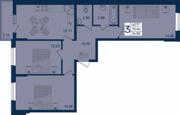3 комнатная квартира с ремонтом 76.86 м², на 15 этаже в жилом комплексе ''Дом 101''. ЖК Дом 101 - это уникальное пространство на территории 101 га. Парк 20 га с спортивными площадками и амфитеатром. Школа на 1725 мест и пять детских садов. Благоустроенные дворовые территории с детскими площадками и зонами отдыха создают комфортную среду для семей. 1965
