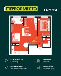 Жилой район ''Первое место''- один из самых масштабных проектов в России. На территории 71 га 18 кварталов, 31 дом переменной этажности от 8 до 18 этажей, собственный парк 9 га, храмовый комплекс, пешеходный бульвар ''Круг семьи'', детские и спортивные площадки, мангальные зоны и различные локации для отдыха. В шаговой доступности действующие муниципальные образовательные учреждения: школа на 1 100 мест и детский сад на 250 мест. Помимо этого, в жилом районе ''Первое место'' построятся школа на 1700 мест с крытым 25-метровым бассейном и 5 детских садов на 1 490 мест. На первых этажах многоуровневых парковок ''паркхабов'' разместится более 61 тыс м2 коммерческих помещений. Жителям будут доступны собственный фитнес-центр, кафе, рестораны и магазины. В каждом подъезде предусмотрены дизайнерские холлы в стиле лобби отелей, консьерж-сервис, лапомойки, отдельные колясочные и велосипедные. Также в домах будут просторные кладовые помещения и комнаты для хранения почты с почтоматами для получения посылок из маркетплейсов.