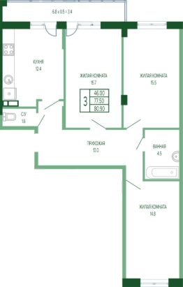 3-к квартира Показать на карте