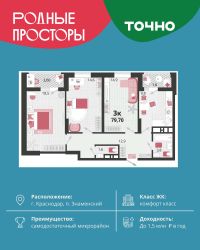 Продается 3 комнатная квартира площадью 74.36 кв. м. на 3 этаже 18 этажного дома, 2 подъезд, номер 237. Стоимость данного лота включает в себя ремонт, мебель и технику. Будут представлены 3 варианта обустройства квартиры: светлый, тонированный и авторский. Для более подробного ознакомления вы можете обратиться в отдел продаж. Жилой комплекс ''ИНАЧЕ в Молодежном'' включает в себя 14 домов комфорт+ класса переменной этажности с более чем 100 видами планировок, в том числе квартиры с террасами, двухуровневые квартиры и урбан виллы, детский сад на 350 мест, храм, 2 наземных паркинга, а также бульвар и прогулочные аллеи. Срок сдачи первой очереди 4 квартал 2026 года Жилой комплекс находится в Молодежном — тихом микрорайоне с атмосферой размеренной жизни. Рядом расположен зеленый сквер ''Изумрудный'' с зелеными деревьями и велодорожками. Молодежный — молодой район с готовой инфраструктурой. Всю бытовую и семейную можно легко организовать на расстоянии 10 минут от дома. Есть новая школа, два детских сада, поликлиника, работают магазины, аптеки и салоны красоты. Жилой комплекс расположен рядом с удобными выездами на ключевые городские дороги. Можно быстро доехать как в центр города, так и до моря по Ейскому шоссе. Главные чувства от прогулки по нашему району простота и легкость. Архитектуру мы проработали совместно с архитектурным бюро Маликова и создали район с современным лаконичным обликом. При этом мы учли сценарии жизни людей и современные тренды. В наших домах будут разноэтажные секции. Французские балконы и увеличенные окна. На фасадах не будет визуального шума: кондиционеры будут скрыты с специальных корзинах. По всей территории продумана безбарьерная сеть тротуаров и переходов. Любое перемещение — пешком или с коляской — станет комфортным. - На территории комплекса будут расположены детские и спортивные площадки, а также амфитеатр, арт-объект и храм. - 40% территории занимает озеленение с более чем 50 видами растений. - Хранить автомобиль с комфортом и беречь его от осадков помогут два наземных многоуровневых паркинга. Кроме крытых паркингов, на территории есть открытые — в достаточном числе для жителей и гостей района. - Проект включает в себя строительство современного детского сада и так же в пешей доступности находятся 2 школы. - На первых этажах мы создадим коммерческие помещения с планировками, которые помогают бизнесу. Умный проект коммерции включает удобные входные группы, высокие потолки и панорамные окна, приглашающие заглянуть внутрь. - Эстетика холла продолжает природную идею района. Дизайнерские холлы выполненные в натуральных цветах с живыми деревьями включают в себя места для ожидания, встреч, санузлы, колясочные и постаматы. - Система аудиомультирум в каждой квартир - распределение аудио- и видео-сигналов по всей квартире. Для более подробного ознакомления вы можете обратиться в отдел продаж.