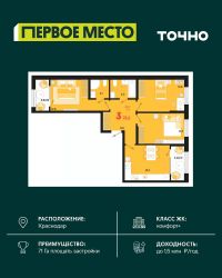 Жилой комплекс включает в себя 18 корпусов переменной этажности: от 18 до 21 этажей. Дом возводится по долговечной монолитной технологии с фасадами из керамического кирпича, с вставками декоративных элементов. В проекте выполнена дизайнерская отделка входных групп, установлены современные скоростные лифты. На первых этажах расположены закрытые боксы для хранения колясок и велосипедов.В жилом комплексе предложено множество планировочных решений: от квартир- студий до 2-х комнатных квартир в классических планировках. Сдаются юниты с подчистовой отделкой, панорамными окнами и высотой потолков до 2,94 метра.Парк ''Флагманский'' площадью 42 000 м2 расположен внутри микрорайона. Жилой комплекс оборудован детскими эко-городками, площадками для групповых занятий, кроссфита, воркаута, уличными тренажерами, велодорожками, памп-треками, футбольным полем, площадкой для выгула собак и амфитеатром для проведения мероприятий. На территории проекта ведётся круглосуточное видеонаблюдение, а так же установлены ''тревожные'' кнопки, в подъездах домов имеется консьерж-сервис и работает частное охранное предприятие. Коммерческие помещения располагаются на первых этажах. В проекте реализованы 4 детских сада и школа на 1 875 мест. Для удобства жителей обустроены парковочные зоны четырёх типов: наземные, подземные, крытые под стилобатом и многоуровневый паркинг.Проект расположен в районе Прикубанского округа. В шаговой доступности детские сады, школа, магазины, поликлиника, фитнесс-клубы, детские секции, развивающие центры, парк ''Флагманский'' и торгово-развлекательный центр ''Любимово''. До центра города 20 минут транспортом.