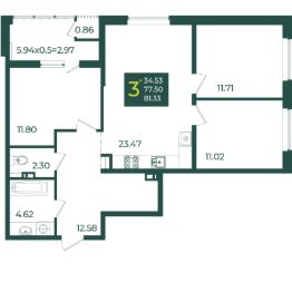 3-к квартира Показать на карте