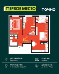 Жилой район ''Первое место''- один из самых масштабных проектов в России. На территории 71 га 18 кварталов, 31 дом переменной этажности от 8 до 18 этажей, собственный парк 9 га, храмовый комплекс, пешеходный бульвар ''Круг семьи'', детские и спортивные площадки, мангальные зоны и различные локации для отдыха. В шаговой доступности действующие муниципальные образовательные учреждения: школа на 1 100 мест и детский сад на 250 мест. Помимо этого, в жилом районе ''Первое место'' построятся школа на 1700 мест с крытым 25-метровым бассейном и 5 детских садов на 1 490 мест. На первых этажах многоуровневых парковок ''паркхабов'' разместится более 61 тыс м2 коммерческих помещений. Жителям будут доступны собственный фитнес-центр, кафе, рестораны и магазины. В каждом подъезде предусмотрены дизайнерские холлы в стиле лобби отелей, консьерж-сервис, лапомойки, отдельные колясочные и велосипедные. Также в домах будут просторные кладовые помещения и комнаты для хранения почты с почтоматами для получения посылок из маркетплейсов.